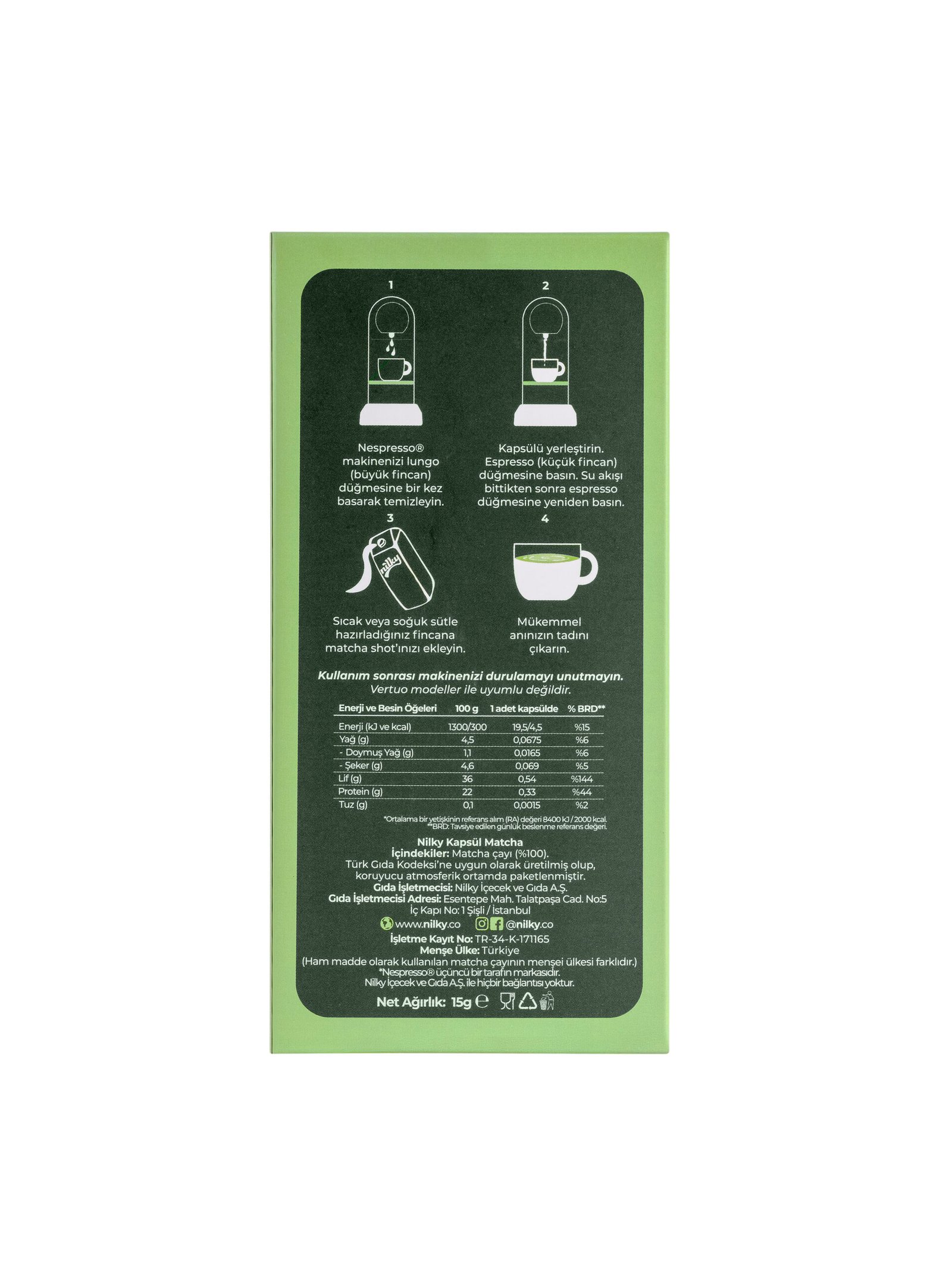 Nilky Matcha Ceremonial Grade 10 Adet Kapsül - Nespresso Uyumlu